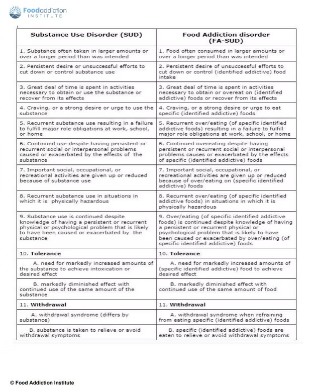 Food addiction is a term that is used to describe a pattern of eating consumption and behaviors with the same criteria for substance use disorder.